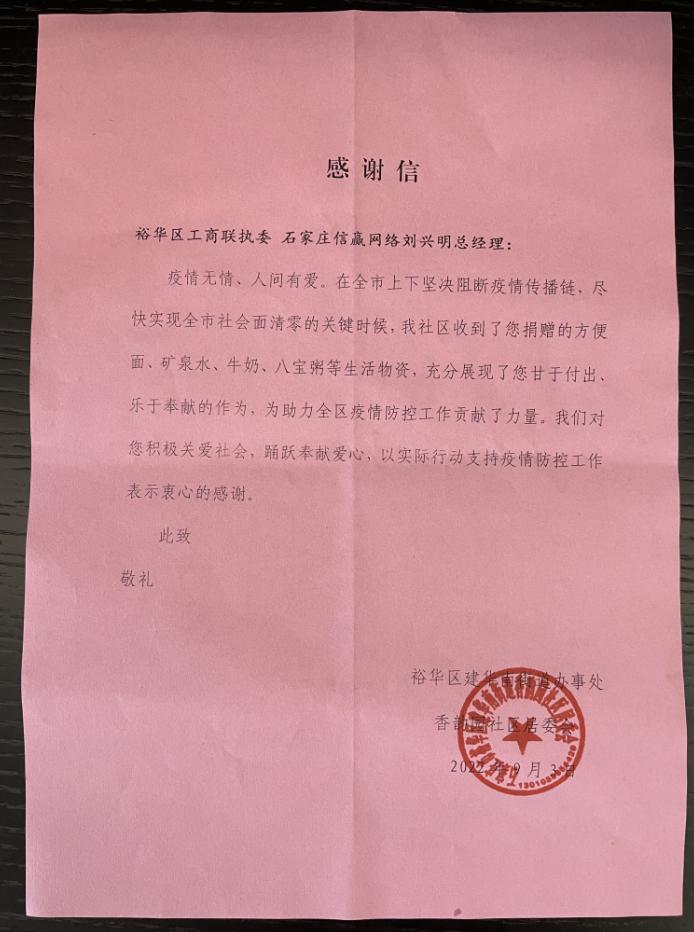 同心抗疫 攻克“石”艰 信赢捐赠物资